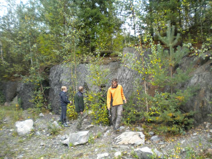 Стена большая. Где в ней альмандины спрятались непонятно.