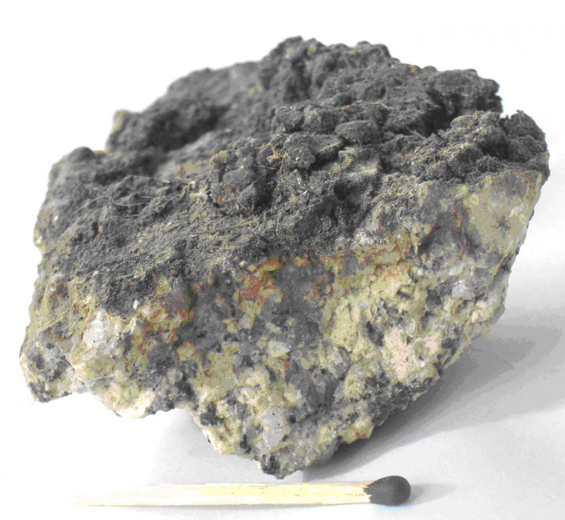 Гранитосодержащая массивная корка первичных сфероидальных руд.