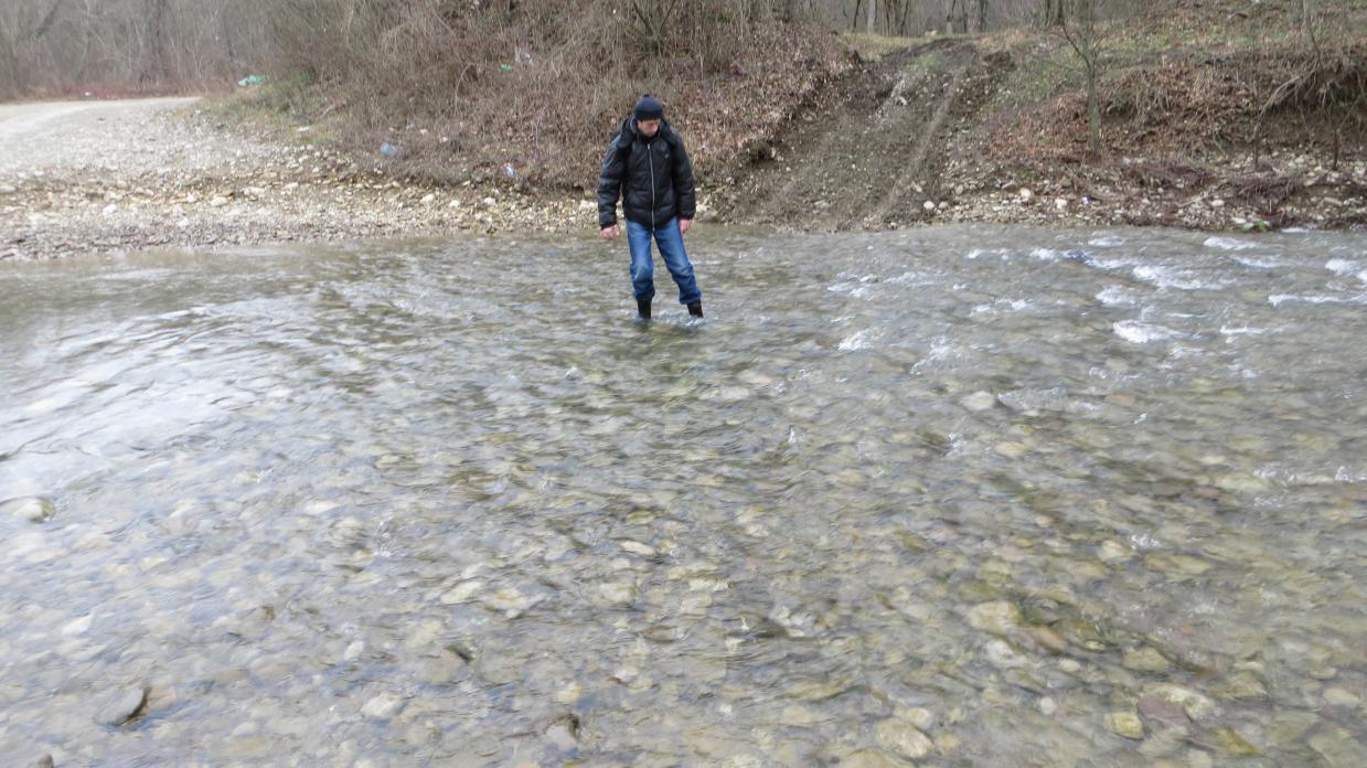 Первые три километра шли по грунтовой дороге, раскатанной лесовозами. Невдалеке, слева от нас, течёт река Чепси (Шепси) — левый приток Псекупса. Потом брод через речку. Далее идём до развилки. На развилке дорог нужно брать вправо. (Левая дорога, более накатанная, ведёт в урочище Поднависла).