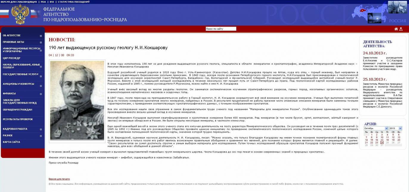 “Именем этого выдающегося ученого назван минерал–амфибол, содержащийся в известняках Забайкалья”.