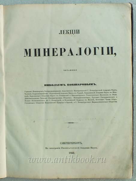 Прижизненное издание "Лекции минералогии", читанные Николаем Кокшаровым, 1863 года продаётся за 30 000 руб. (меньше $1000).