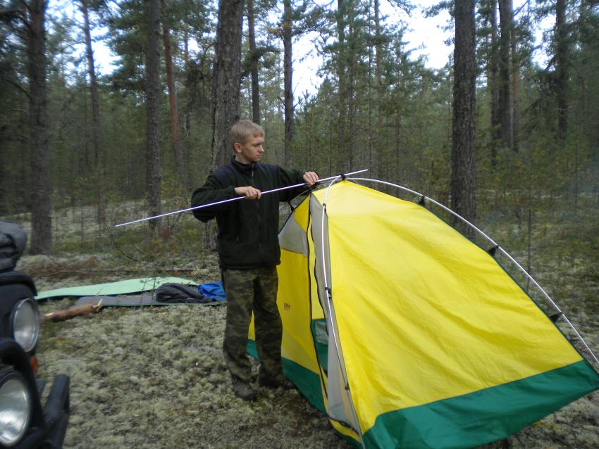 Не каждый сообразит, как собрать и разобрать такую палатку на трёх прутьях.