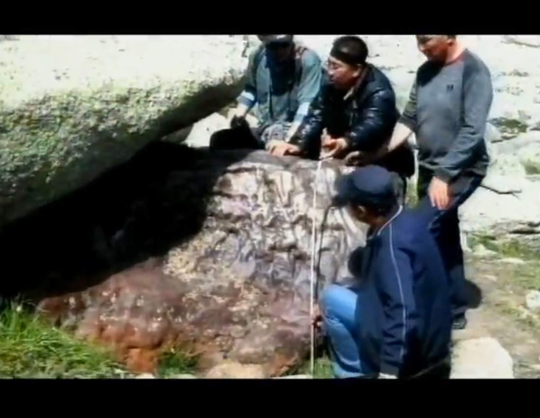 Местные-то этот метеорит давно уже нашли: на нём нацарапано несколько надписей, успевших покрыться ржавчиной. Но местные китайцев не любят и не информируют. Видимо, это часть Синьцзян-Уйгурского автономного района, где живут уйгуры — братья и сёстры наших алтайсикх татар. Китайцы интенсивно заселяют эту территорию своими, кто-то из них настучал в Пекинский планетарий о метеорите, и в начале июля 2011 года оттуда в горы отправилась экспедиция со специалистом по метеоритам Baolin Zhang.