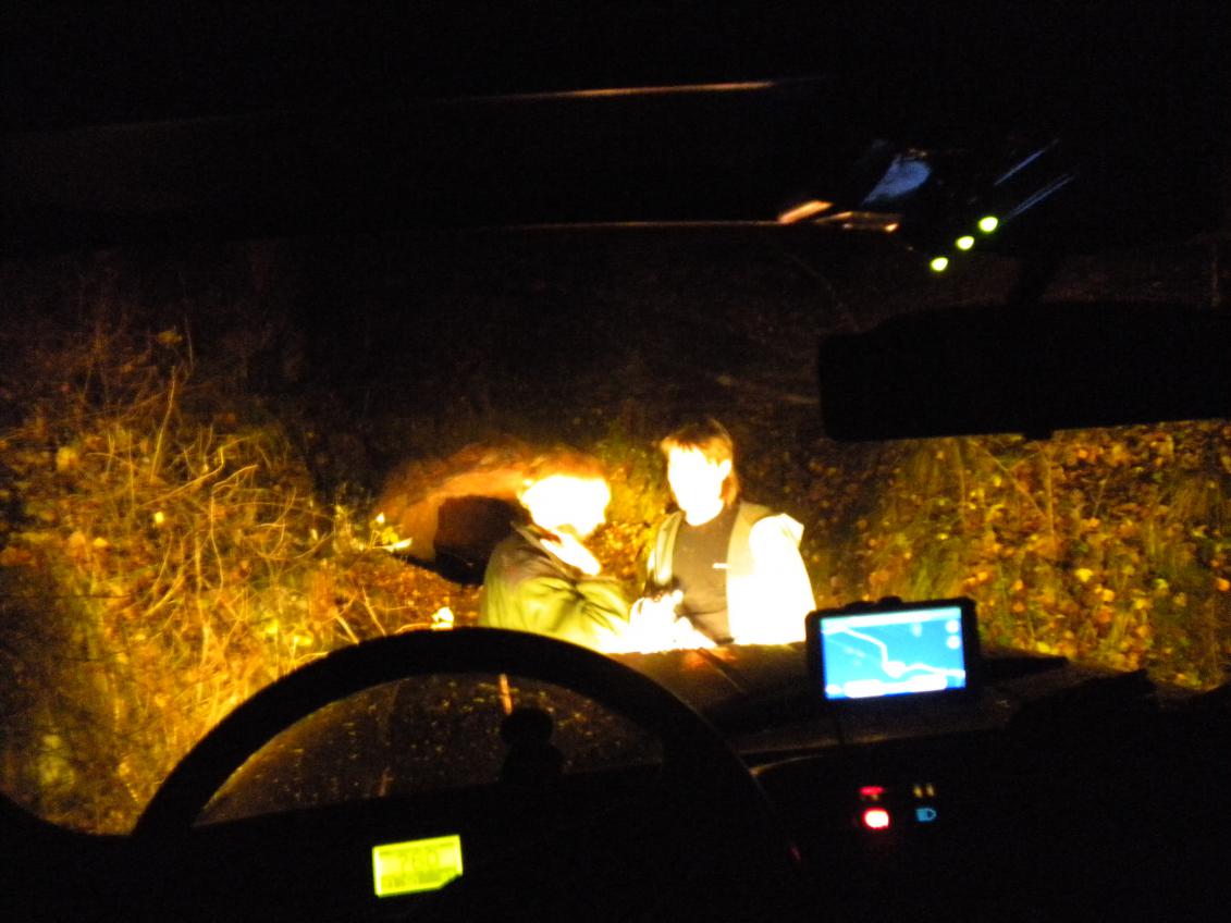 Заехать на машине в дыру не удалось, поэтому пришлось вылезать.