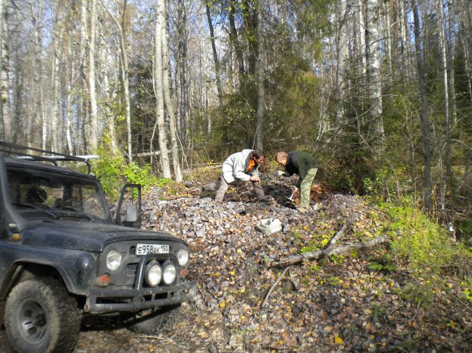 Утром спать теплее чем ночью, поэтому встали поздно. Приняв пищу и сложив в машину пожитки, в час дня начали ковыряться в отвалах штольни (условно назовём её Рогосельга).