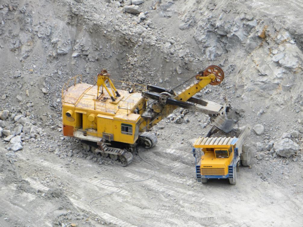 Как говорил персонаж одного известного фильма: "В начале были праздники, потом аресты, потом решили совместить..." Вот и мы с Алексеем, не мудрствуя лукаво, день похода по штольне совместили с походом на карьер Медведь-гора. Прежде всего поясню, что собой представляет Медведь-гора (или Медвежья гора) — это горный массив, на котором добывают камень для строительства (известняк, доломит, песчаник). Разработки ведёт ОАО "Медвежья гора". Понятно, что попасть в "зону боевых действий" не так-то просто — вопрос охраны поставлен ребром))) Но мы, оставив машину в часе ходьбы от карьера, всё-таки умудрились просочиться партизанскими тропами))). В том районе несколько каменоломен и карьер по известняку. Огромная искусственная гора отвалов (террикон, как на шахтах, см. фото). Возле неё производство (типа заводика) гравия по фракциям, там же погрузка на автомобильный или железнодорожный транспорт. Есть своя железнодорожная ветка!