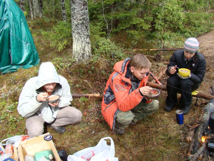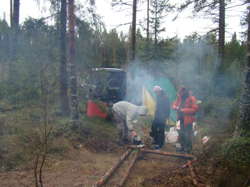 На ночёвку остановились подальше от мест отходов местного населения, в шикарном елово-сосновом лесу, около той самой железной дороги, которая фигурирует в первых кадрах фильма "Тёмный мир" режиссёра Антона Мегердичева.