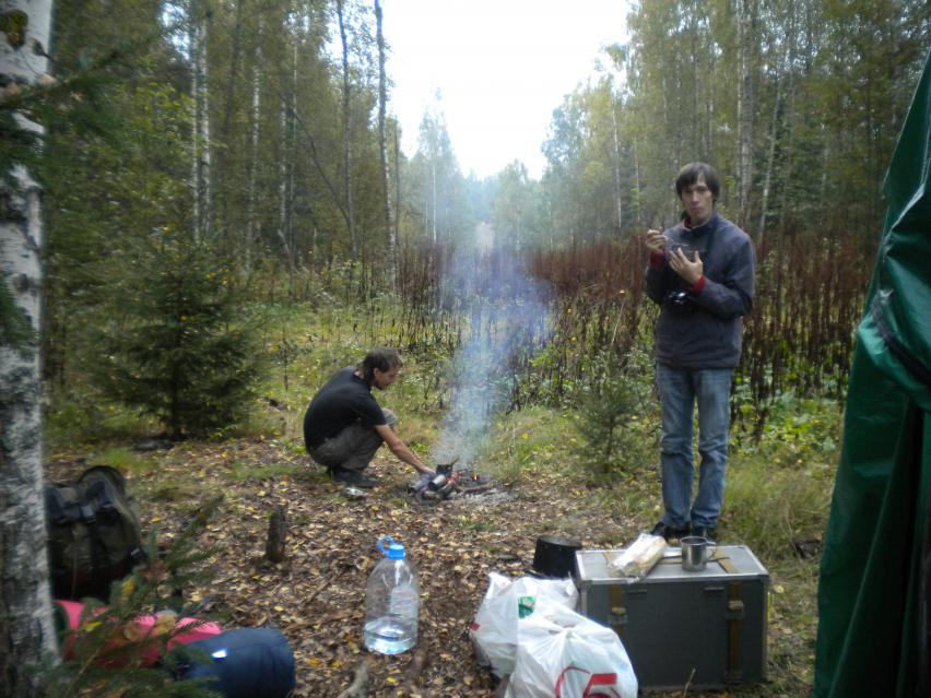 Первая ночёвка и костёр пришлись на зону отчуждения магистрального газопровода. Других свободных мест в лесу не было.