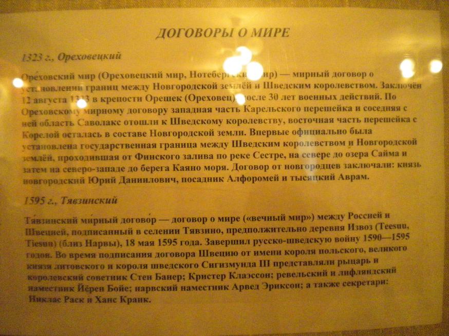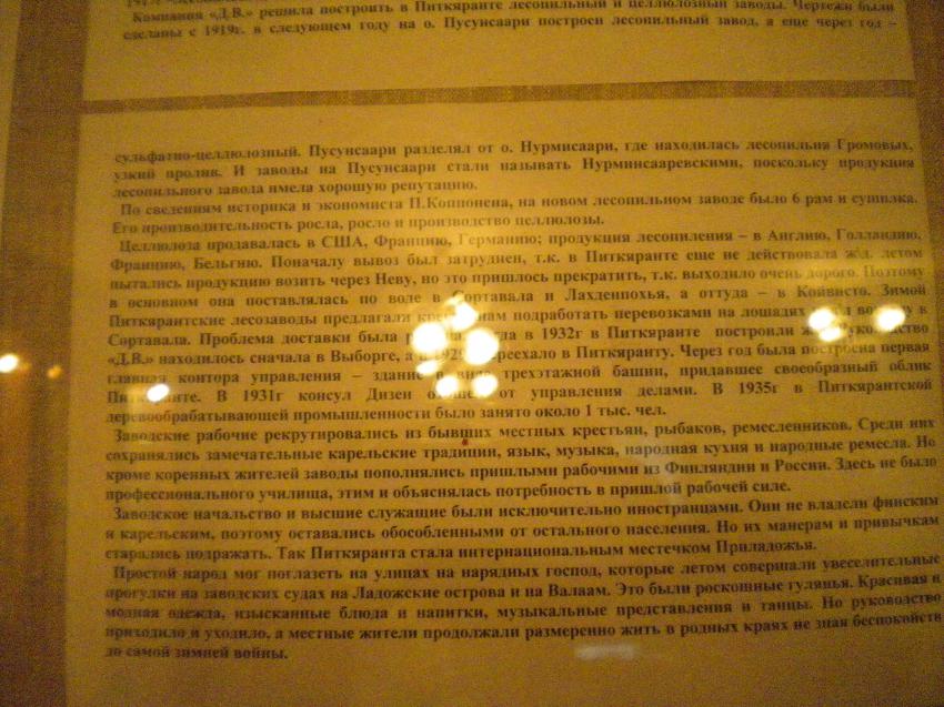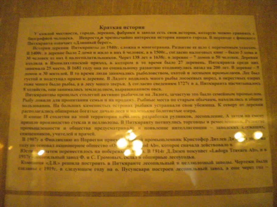 Некоторые исторические справки, размещённые в музее Питкяранта. Охватывают века с 14 по 20.