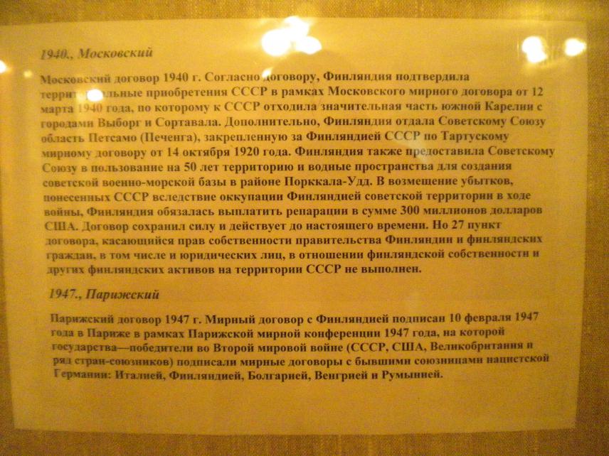 Со слов экскурсовода, финны в своё время вывезли из музея Питкяранта все архивные материалы. На просьбу поделиться финны отвечают: - У нас материалов из музея Питкяранта нет. При этом, по агентурным данным, финны открыто выставляют в своих музеях бывшие экспонаты музея Питкяранта.