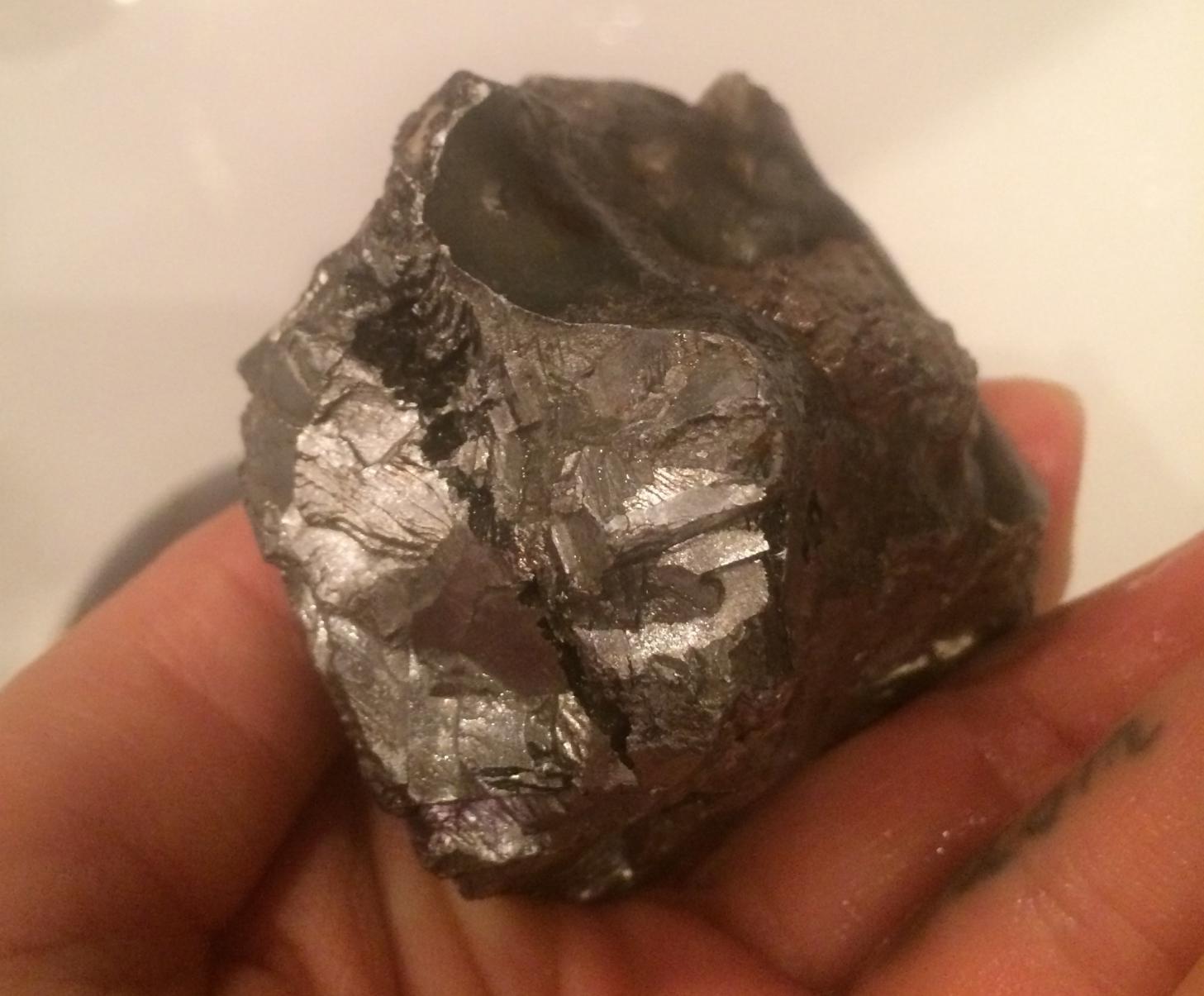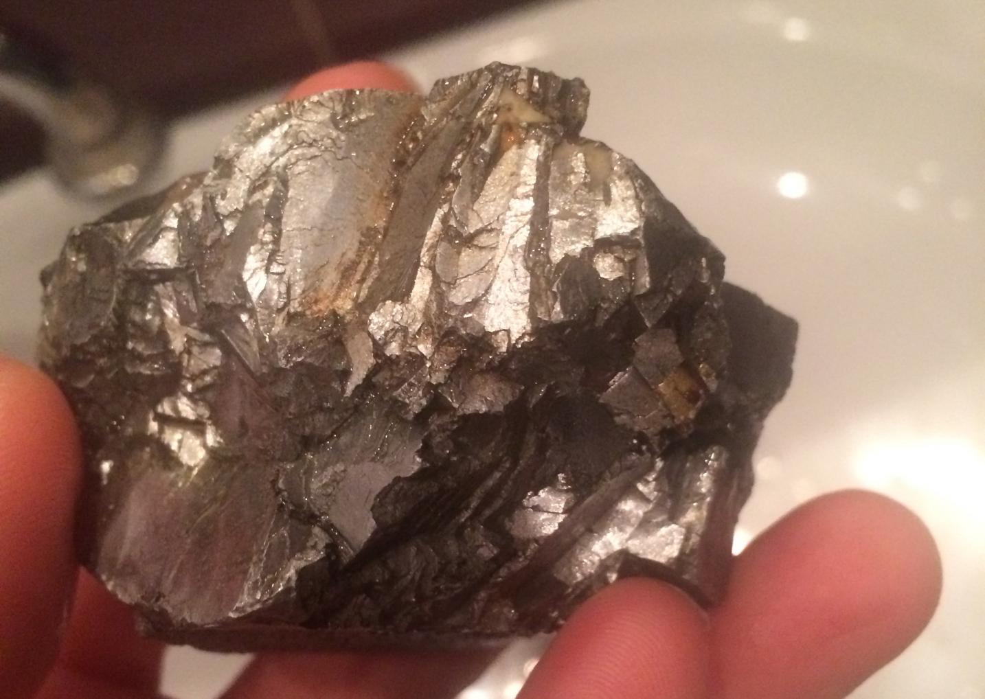 Помогите определить "сокровище". ![]() Найдено случайно в поле в Московской области. Лежало на пашне. Год находки не помню, приблизительно 93-97 гг. Никаким физическим и химическим воздействиям образец не подвергался. Минерал/сплав тяжелый, цвет серебристо-металлический. Внутри есть вкрапления белого (по виду каменистого). Структура неоднородная. В расщелинах видна игольчатая структура (если это можно так назвать). Есть изменения в цвете (жёлтые, зелёные и сине-фиолетовые), холодный, легко охлаждаем и долго удерживает температуру. (Промывался в холодной воде из-под крана). Удивило, что быстро остыл. В воде становится более серебристым и блестящим. Нагреванию не подвергался. Хранился при комнатной температуре. Читала/искала/смотрела. Предполагали всегда, что это метеорит, но он не магнитен. Сейчас возникло подозрение на арсенопирит. Надеюсь не он... (Не стучала молотком, утром попробую). По внешнему виду неоднороден и присутствует эффект оплавления. (Простите, если пишу неверно и что-то называю не своими именами, я не специалист в данной области). Больше всего меня интересует, что это и может ли это нанести вред, находясь рядом с человеком. Проявила заинтересованность к своему "сокровищу" из-за постоянно ухудшающегося здоровья "на ровном месте".