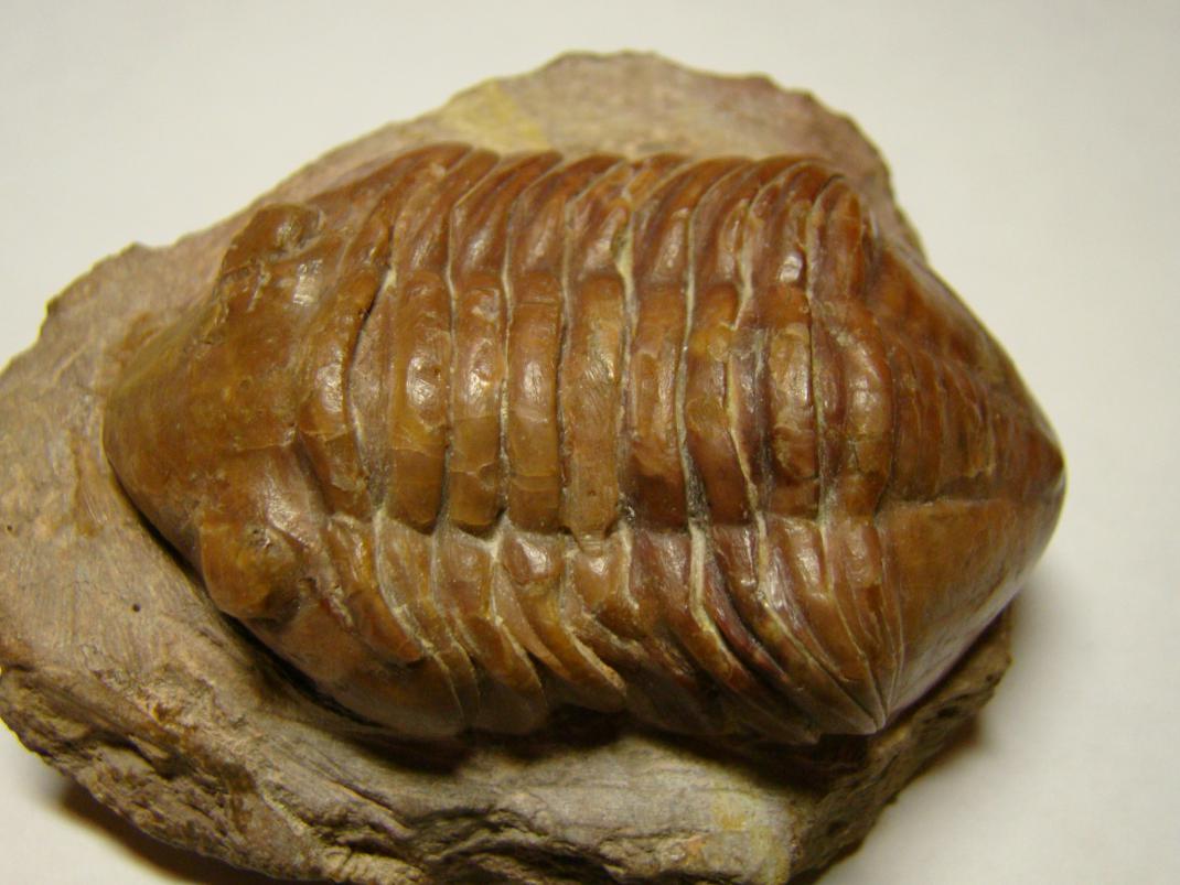 Кальцит я не смог сфотографировать вообще. А вот на Трилобите виден контраст настоящего с доделанными частями. Выкладываю фотки. То, что на спине трилобита проявлено светлыми пятнами — пластмасса, которой его доделывали. |