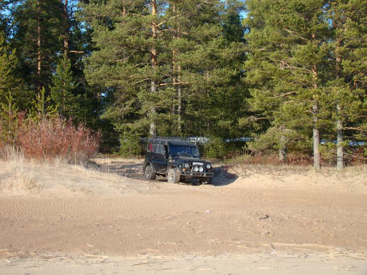 По пути на следующую точку маршрута (г. Сортавала, краеведческий музей) остановились на ночёвку на берегу Крестового озера. Озеро, тектонического происхождения, напоминает по форме крест. Дорога к озеру была сильно заснежена, наш тюнингованный вездеход, с блеском преодолевал вновь и вновь встававшие перед ним снежные препятствия. Почти всю ночь шёл дождь, поэтому утром, чтобы не терять время на разведение костра и сушку дров, мы воспользовались газовой горелкой, чтобы приготовить наивкуснейший завтрак: рис с тушёной говядиной, приправленный особой специей (по рецепту шеф-повара bluesroad).