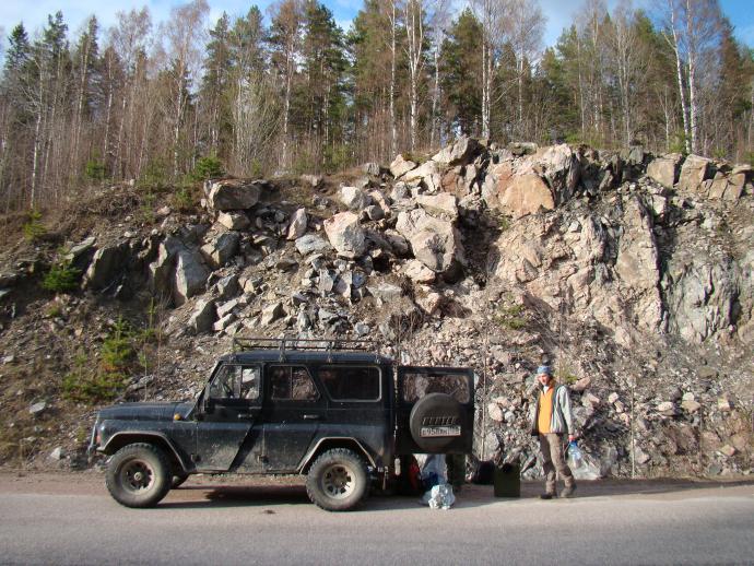 По дороге в г. Петрозаводск остановились неподалеку от Кителя за пегматитами, письменным гранитом, дымчатым кварцем, микроклином.
