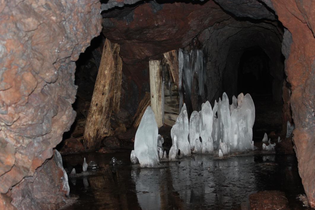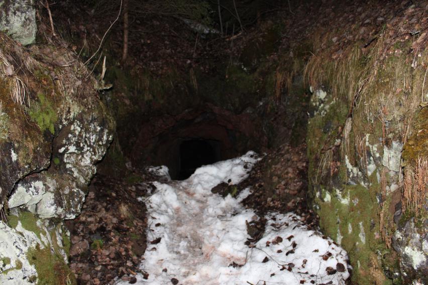 Потрясающий объект, один из моих любимчиков, после г. Муркианмяки. Очень советую там побывать. Своего рода техногенная пещера. В ней много залов и ходов. Протяжённость, конечно, впечатляет. Некоторые проходы, к сожалению, были замурованы льдом и затоплены. Тут ещё в конце 19 века проводилась добыча массивных гематитовых руд. Сейчас большей частью руды окислены. Остались только специальные подпоры из толстого бруса, необходимые для того чтобы исключить обрушение кровельного блока породы.