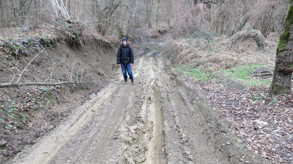Первые три километра шли по грунтовой дороге, раскатанной лесовозами. Невдалеке, слева от нас, течёт река Чепси (Шепси) — левый приток Псекупса. Потом брод через речку. Далее идём до развилки. На развилке дорог нужно брать вправо. (Левая дорога, более накатанная, ведёт в урочище Поднависла).