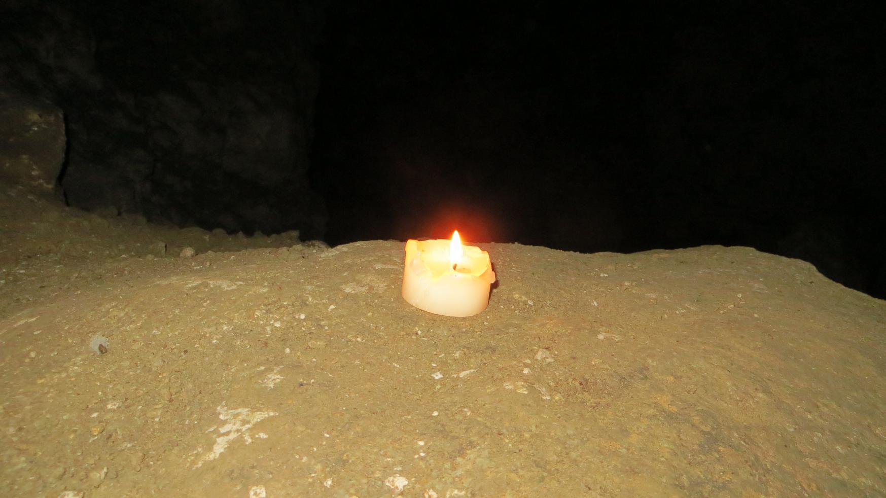Кстати, вот ещё интересный момент. У нас было два фотика: Canon и Casio с видеокамерами. Фото со вспышкой они снимали без проблем, но видео в пещере — уже никак (это вы поймёте, посмотрев наш любительский фильм о пещере). А свет с фонариков на светодиодах — "мёртвый" и для съёмок не годится. Понимайте это как хотите...))) У меня при себе была свеча. И на остановке в одном из залов я её зажёг. Этого "живого" света хватило, чтобы чуть-чуть поснимать на видео. Век живи — век учись!