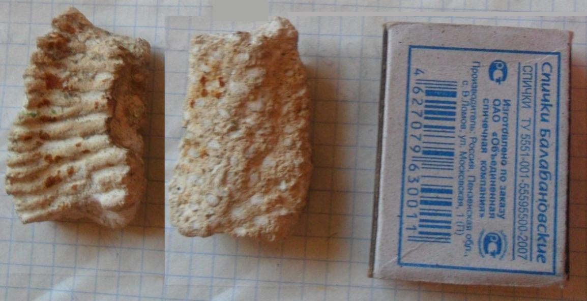 Думал, что это вообще продукт цивилизации, взял на всякий случай. Оказалось, это серый камень с черной поверхностью. С одной стороны в точках-ямках, с другой в полоску.
