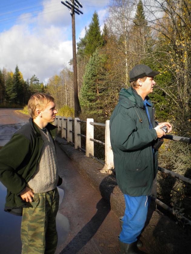 — Может моста не быть. В Карелии часто так бывает. А, мост есть — ой, как хорошо! Мы сейчас едем на Сумерия. Тут, наверное, заказник какой-то. Вот ущелье начинается, там будет речка слева. Возможно, как пишется в литературе, где-то здесь есть выходы мрамора. Именно в районе Сумерия, Южная Импилахти-Сумерия. Сколько раз я здесь ходил, а не видел. Но ведь мраморный завод не мог стоять на пустом месте и возить мрамор почти за 30 километров в Сумерия. А в основном здесь граниты.