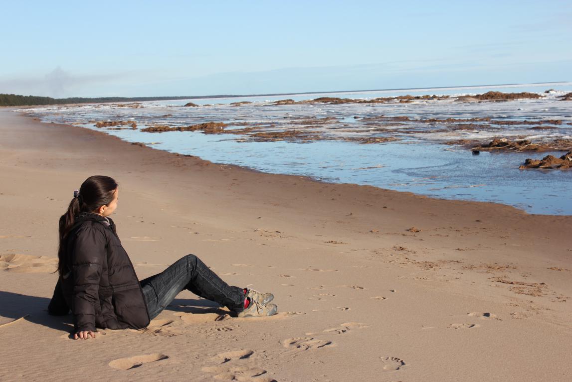 А ещё мы побывали на "побережье" Ладожского озера. У берега озеро ещё заполнено плавучими мини-айсбергами. Мы походили босиком по песку, подурачились и сделали серию потрясающих снимков: