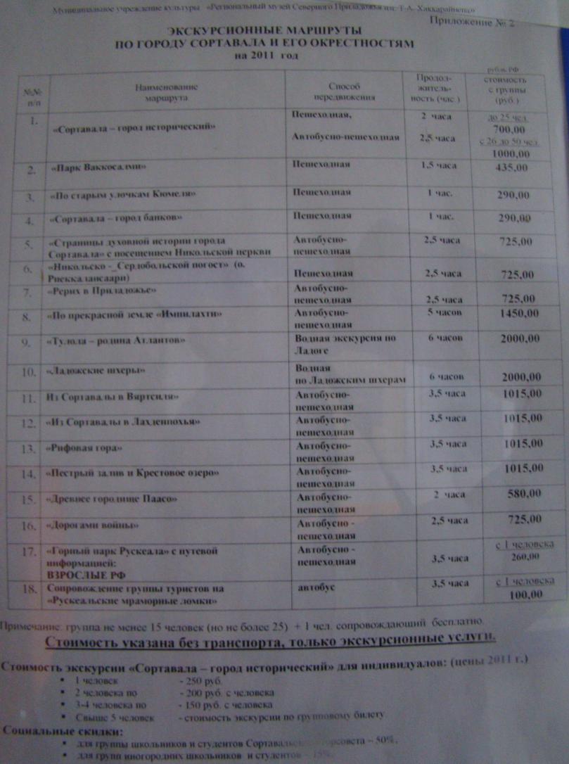 По умолчанию цены на услуги, музей Северного Приладожья, Сортавала