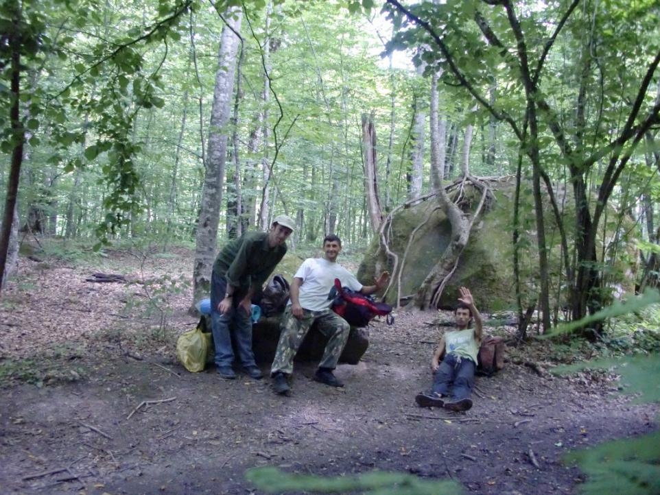 Тропинка набирает высоту. Мы растянулись метров на сто-двести: я впереди, Лёша с Сергеем позади. И вот доходим до дерева на камне. Тут уж точно привал, уже от усталости.