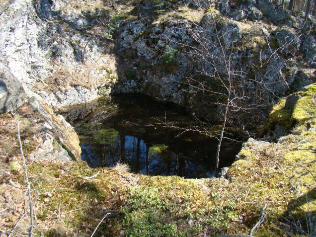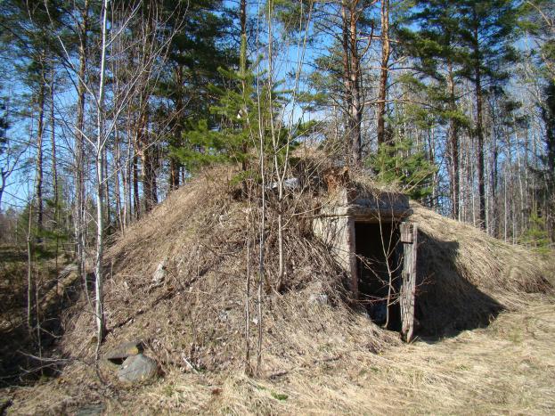 г. Муркианмяки, ориентиром на штольню и отвалы служит домик из сруба.