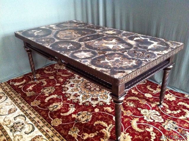 Столы со вставками из аммонитов.