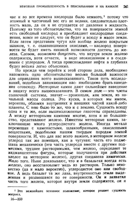 Подробно гипотеза происхождения нефти изложена Менделеевым в главе IV “О происхождении нефти” книги “Нефтяная промышленность в Северо-Американском Штате Пенсильвании и на Кавказе”, опубликованной в 1877 году (тот же том 10 собрания сочинений Менделеева 1949 г. издания, С.228-244).