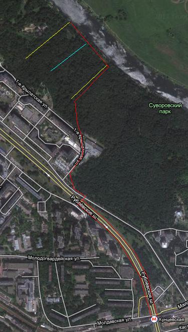 Таким путём до карьеров в Филёвском парке (на карте он называется Суворовский парк) следует идти от метро Кунцевская. Выйти из метро можно с любой стороны.