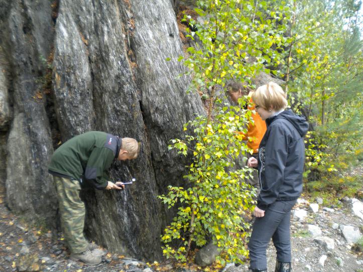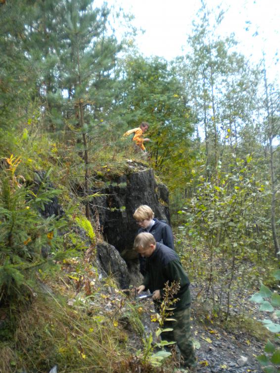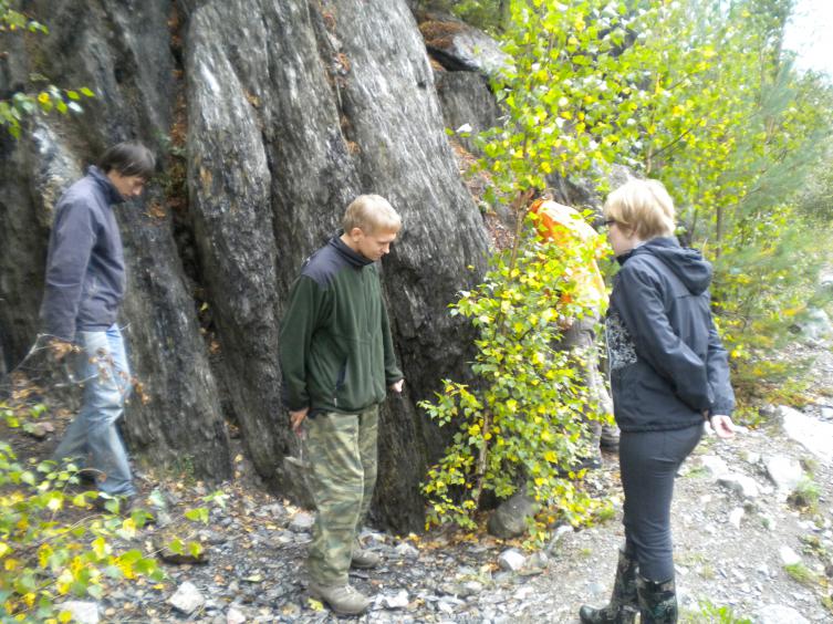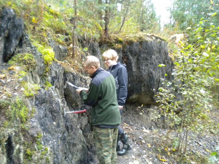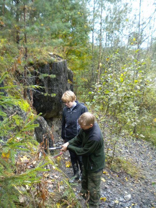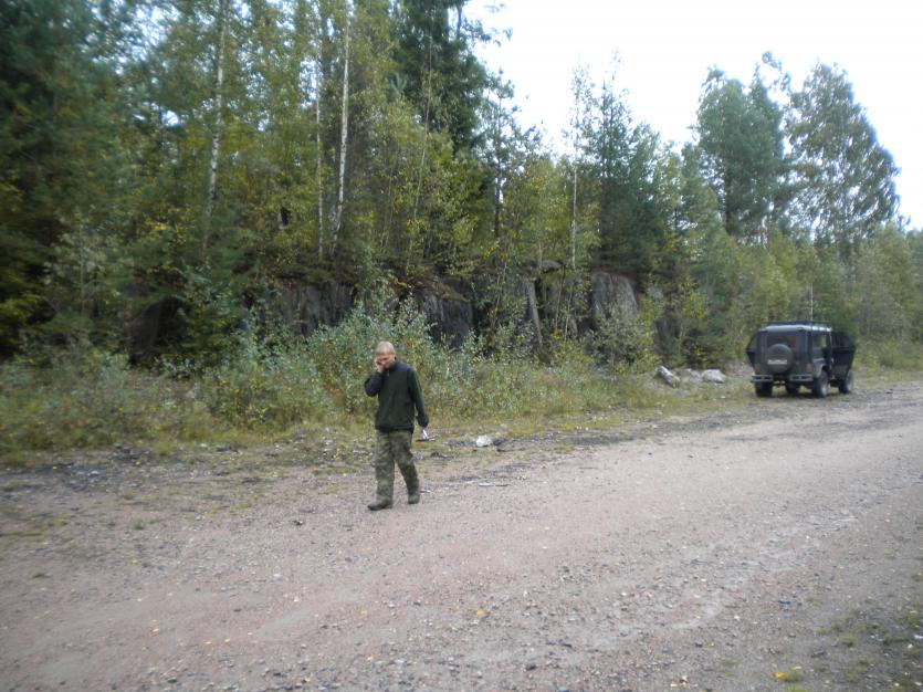 В рамках поездки Карелия-1 (2011/09/11-17) у Ольги Владимировны из Питкярантского музея по плану экскурсии было обнажение близ Кителя. Обнажать планировалось альмандины. Судя по крикам, Василий получил там большое удовольствие.