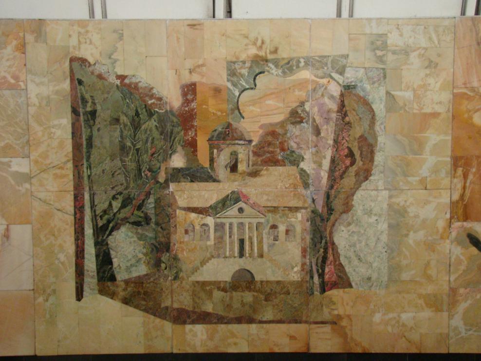 То что я там увидел, я не могу сравнить с другими станциями московского метро. Это единственная станция, где в каменных картинах использовались чароит и лазурит, а также другие поделочные камни. Некоторе картины присутствуют в двух экземплярах, но если приглядеться, они сделаны немного по-разному.