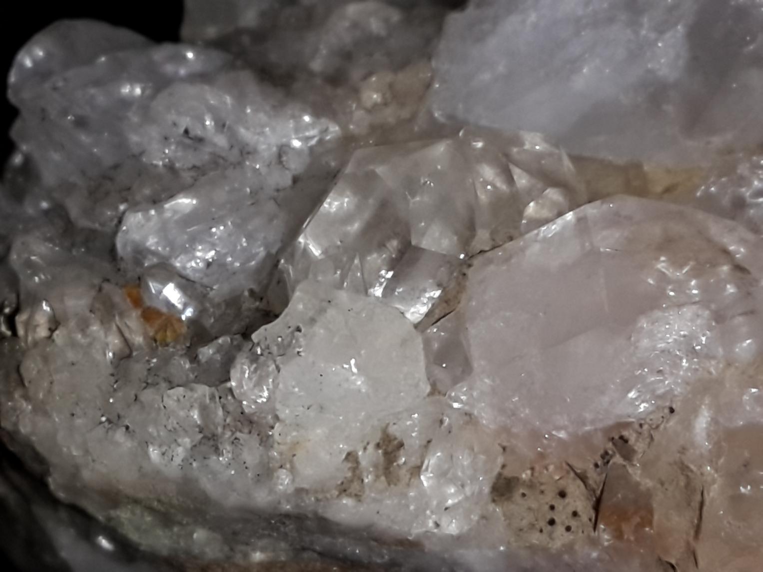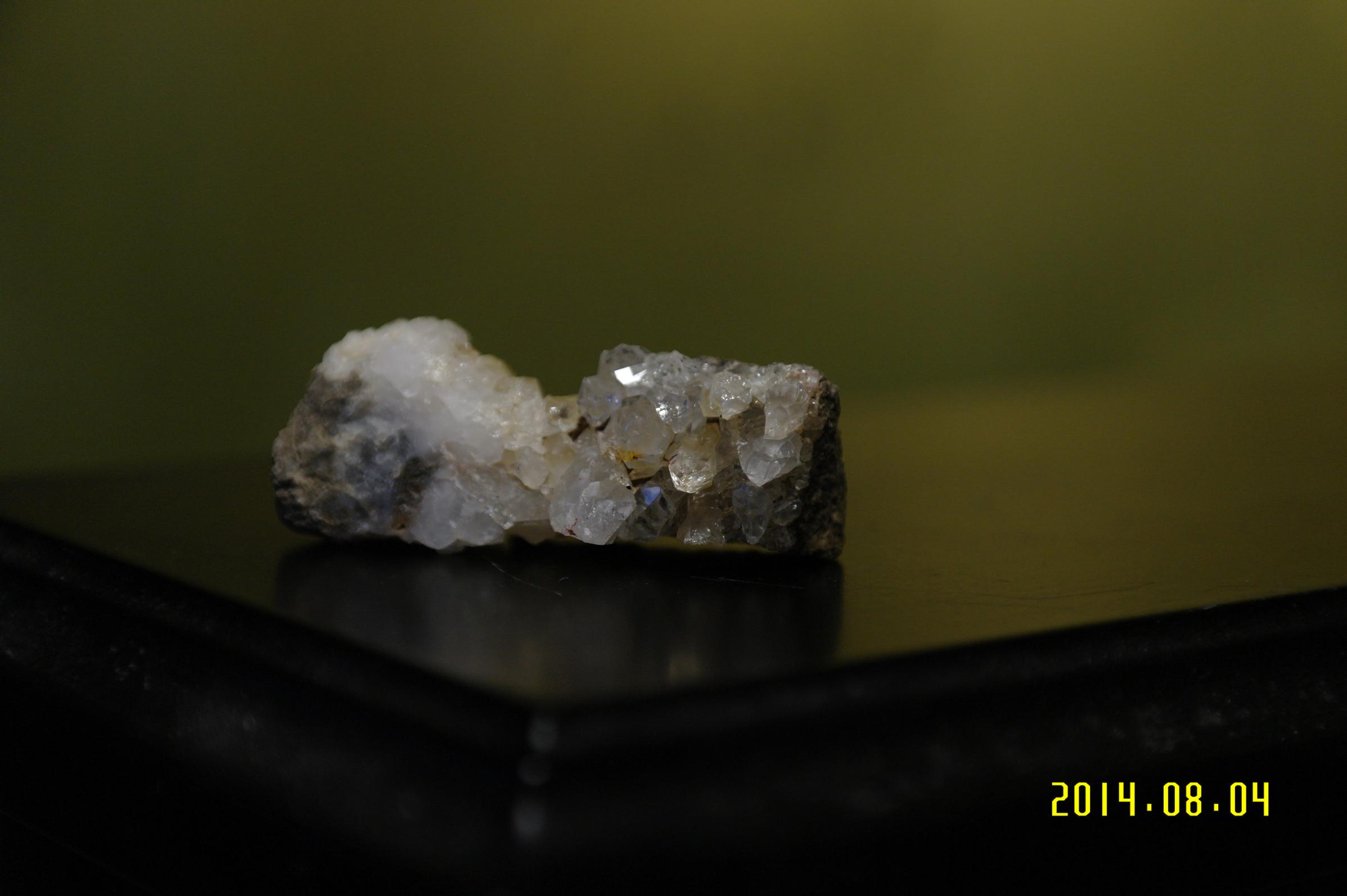 Доброе время суток! Недавно моталась в Крым, по дороге в породе нашла кристаллы, подозреваю, что это горный хрусталь, но до конца не уверена. Подскажите пожалуйста, верны ли мои предположения?