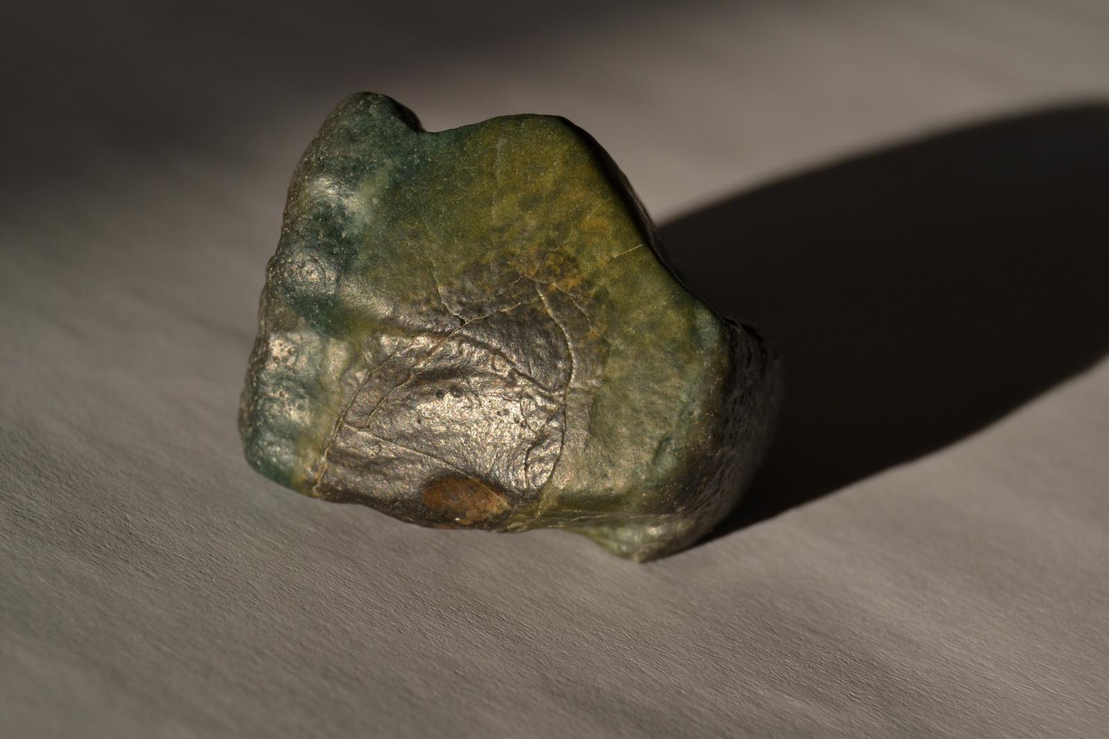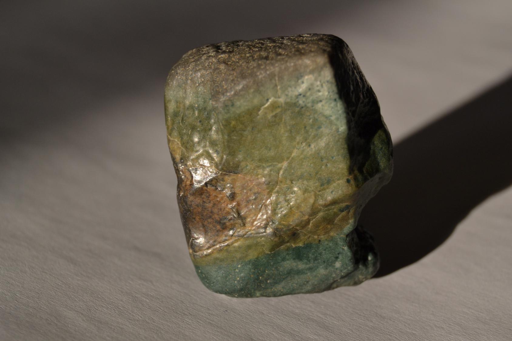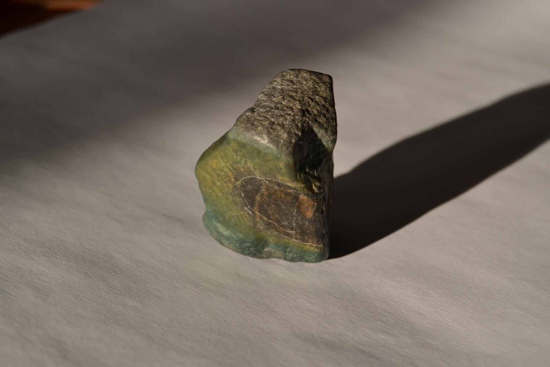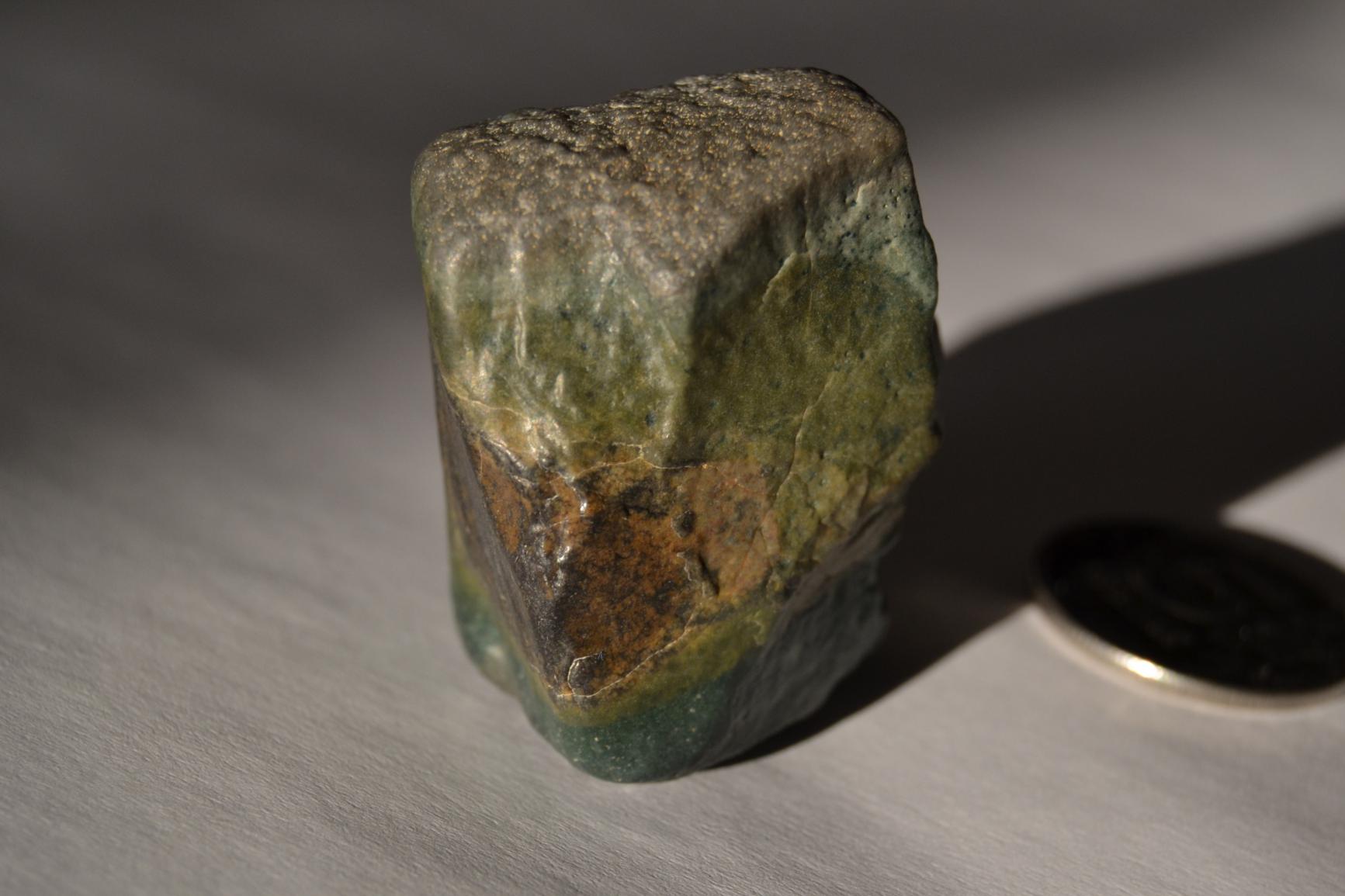 Могу предположить, что это кремень или яшма. Окрашено в зеленый цвет окислами меди.