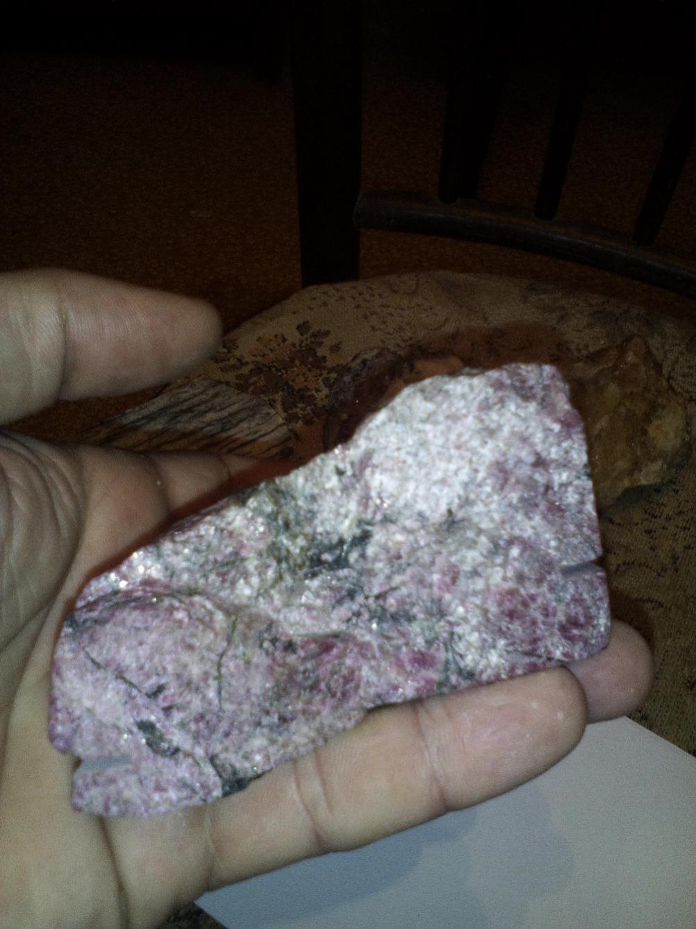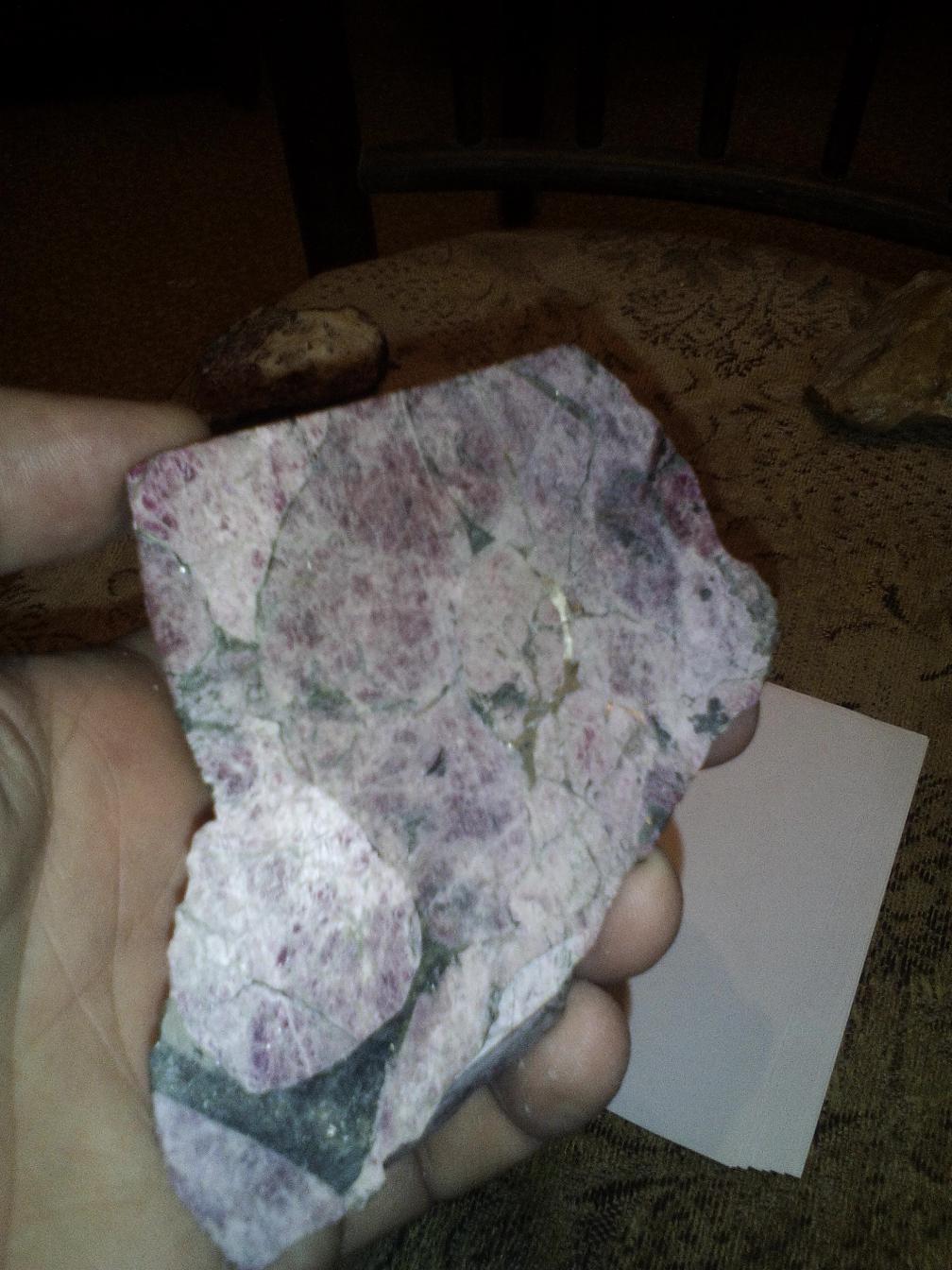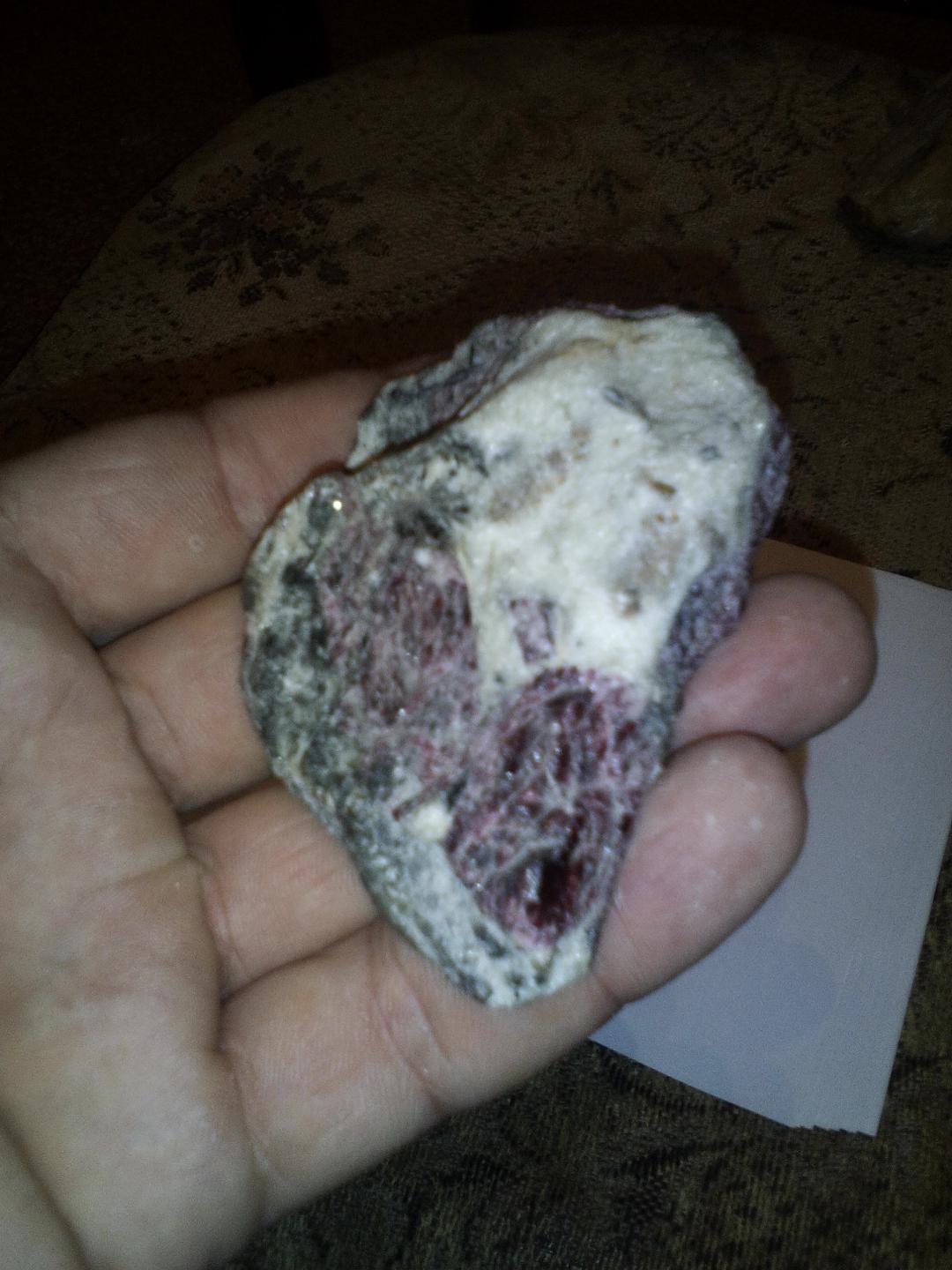 Возможно розовое это эвдиалит. Рекомендую снимки делать на белой бумаге при солнечном свете и использовать макросъемку. Иголкой провести черту и посмотреть на след после иголки.
