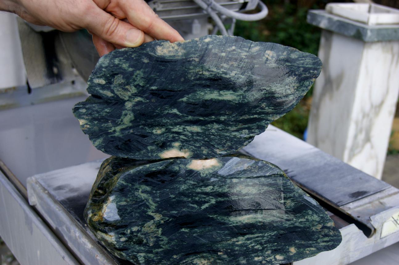 На фото: срез "горбушки" окатыша Хлормеланита (Хромжадеит)