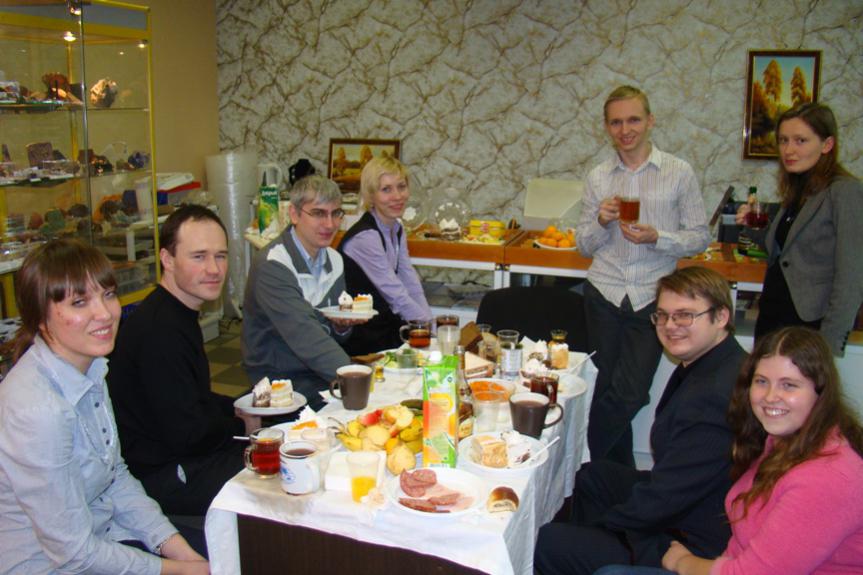 Слева направо - девушка Василия, который фотографирует; Шери, atri, Оксана - жена Артёма, Артём - муж Оксаны, Наталья (... геологической партии, президент или премьер-министр, кажется, она имеет ник на форуме, но я не знаю точно какой), Михаил (фанат геологии и минералогии), Оля - девушка Михаила.