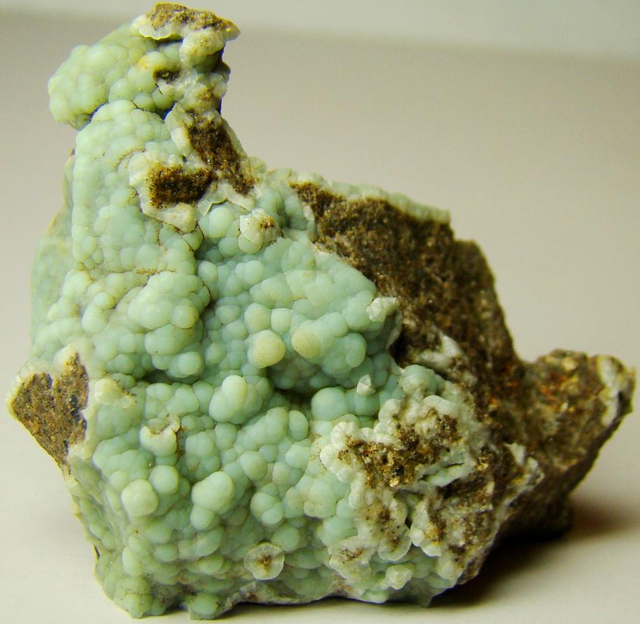 4. Апатит в виде натечных голубовато-зеленых образований. Образец из Ковдора (Кольский полуостров). Видимо, это или карбонатапатит или карбонатфторапатит. В интернете его по разному называют, в том числе штаффелитом и франколитом.