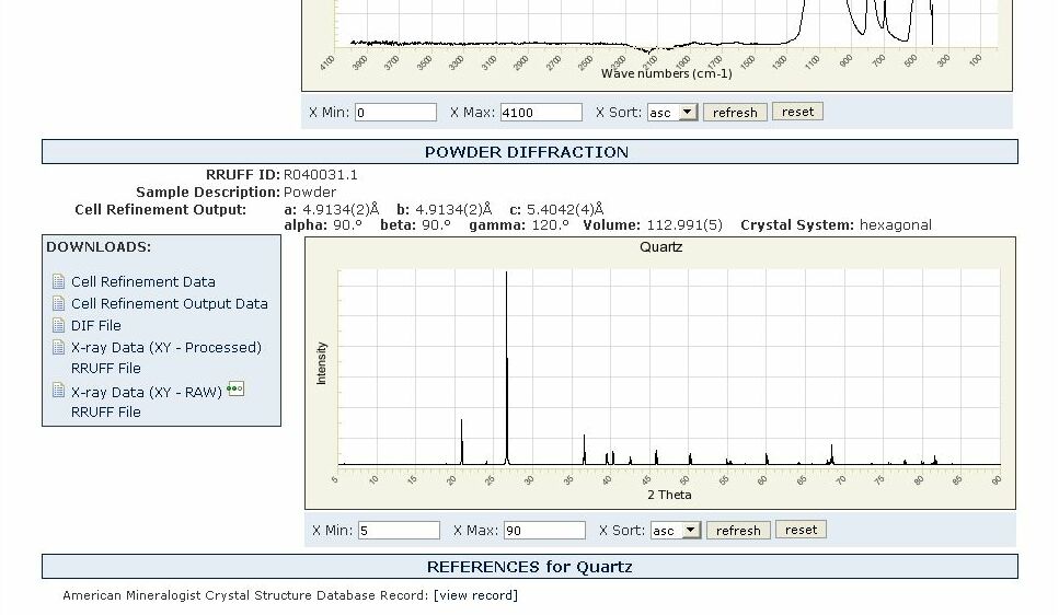 Прилагаю POWDER DIFFRACTION для кварца и альбита, взятые