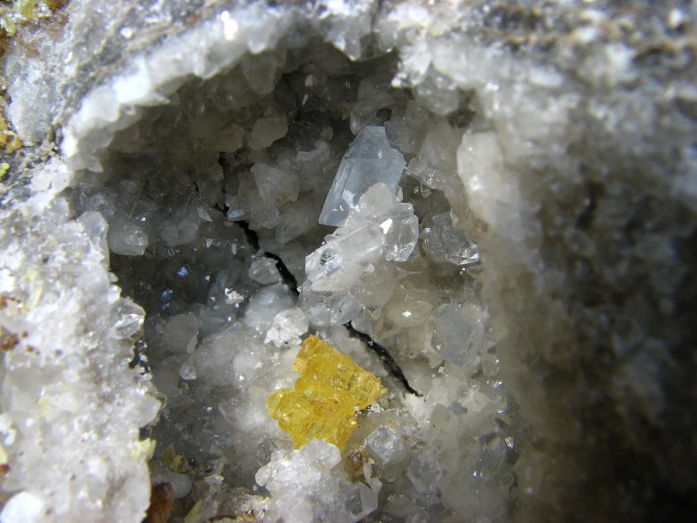 Одно из мест, куда хотелось бы заехать - Водинское месторождение серы. Я уже был там три раза, но образцов уже не осталось, поэтому хочется восстановить. Серы там само собой много, но чтоб найти чего-то стоящее, надо выворачивать глыбы пород. На поверхности вся сера давно выветрелая и рассыпается. О кристаллах серы и говорить не приходится. Еще там попадаются неплохие кристаллы целестина. По рассказам, есть и стронцианит, но мне не попадался. Много там селенита, правда рыхлый весь. Хотя, может быть, если копать вглубь - будет более плотный, не разваливающийся. Попадаются битумные выделения. Самое обидное, что один из лучших карьеров, где добывали самые крупные кристаллы серы, превратили в городскую свалку. Поэтому копаться придётся практически в помойке)) |