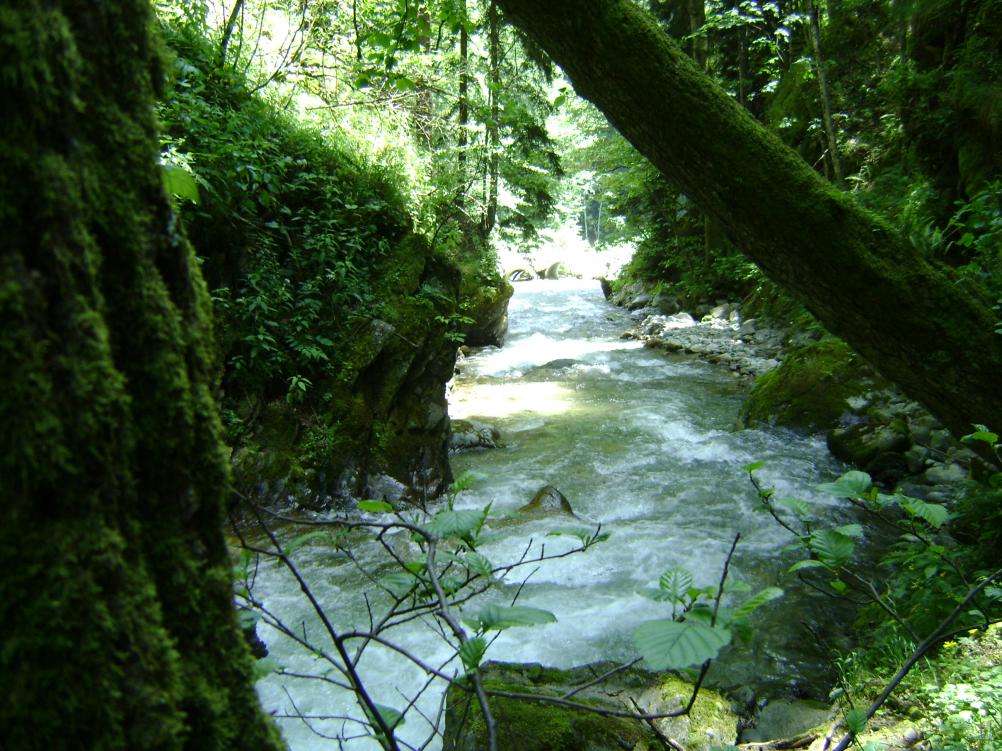 Что-то вы меня заинтриговали этими гранатами. Не то чтобы они мне очень нужны, но дело не в результате, а в процессе. В общем, собрались с духом и "мотанули" туда вдвоём на "пузотёрке"- "LadaGranta" на пару дней. Воздухом подышать, развеяться.)) Дорога оказалась не из лёгких, по крайней мере до Рожкао (23 км), но за Рожкао совсем беда. Без джипа внедорожника туда лучше не соваться, но мы как-то потихоньку доехали... На дороге много было джипов, люди ехали на Кислые источники (на самой границе с Абхазией), плюс лесовозы сильно портили кровь. Дорога узкая, и разъехаться проблема. К вечеру добрались, встали на ночлег у реки Большая Лаба за мостом.(Урочище "Верхнесолёновский мост") На утро занялись изучением ущелья Большого Блыба от устья в верх против течения. Много попадалось Серицита.