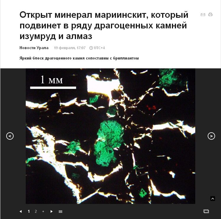 Кстати, минерал мариинскит был утверждён IMA в 2011 году. Так что новость эта не свежая.