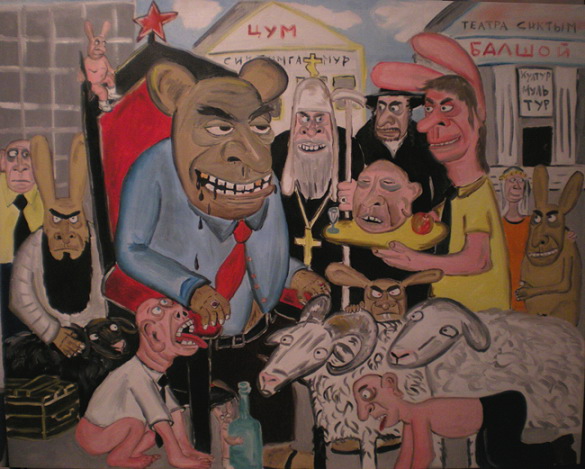 Сходство процессов сноса в Москве и Ташкенте свидетельствует о вненациональности рыночных отношений, что нашло отражение на картине Васи Ложкина: