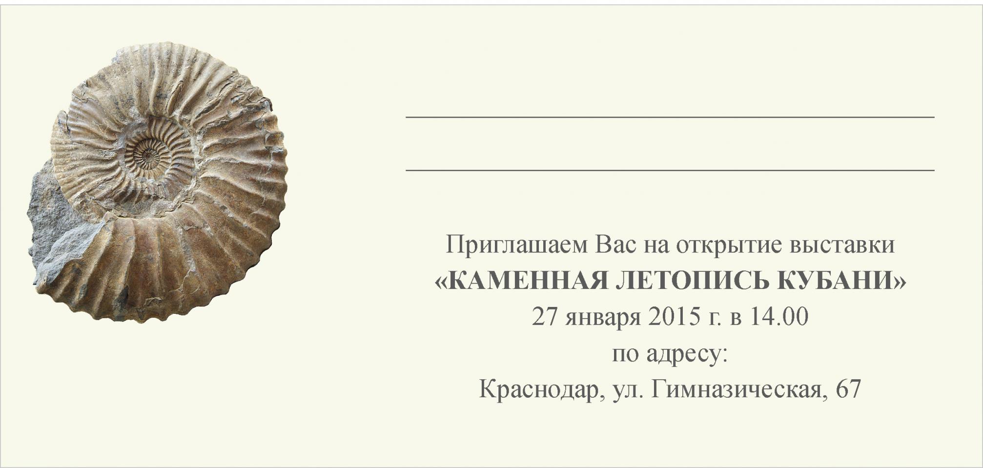 В Краснодарском Государственном музее-заповеднике им. Фелицына (Краснодар, ул. Гимназическая, 67) 27 января 2015 г. в 14-00 состоится открытие выставки "Каменная летопись Кубани". Выставка посвящена геологии и палеонтологии Краснодарского края. На выставке представлены материалы, повествующие об истории развития и изучения края, богатстве и использовании его недр. Это образцы горных пород, минералов и полезных ископаемых, палеонтологических находок.