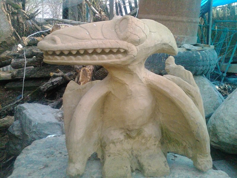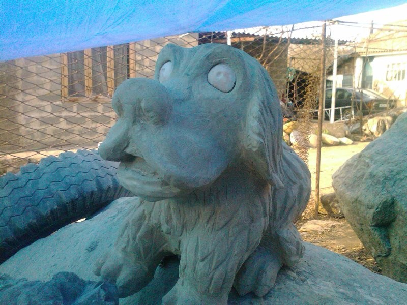 Вот такой грустный лопоухий пёсик получился из каменной глыбы.