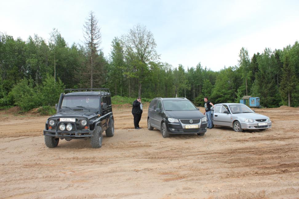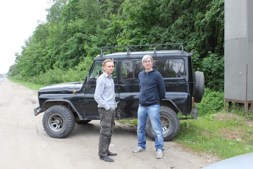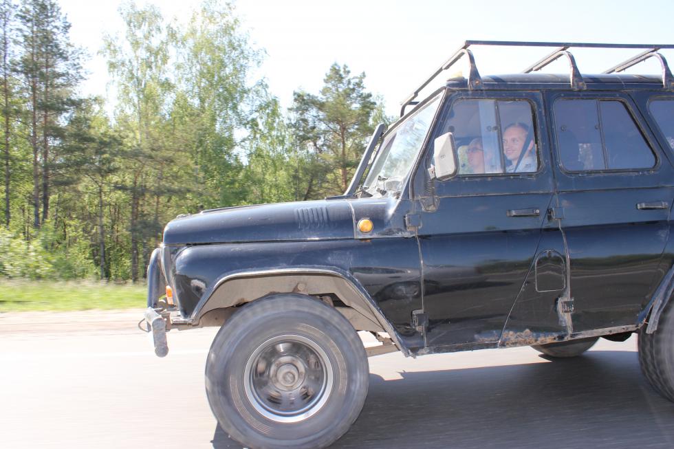 Погода "баловала", яркие и очень жаркие лучи солнца светили нам прямо в лобовое стекло, поэтому, по крайней мере в нашей машине (не знаю как у Романа и Арти в уазике и у Александра в фольксвагене), было душераздирающее пекло.