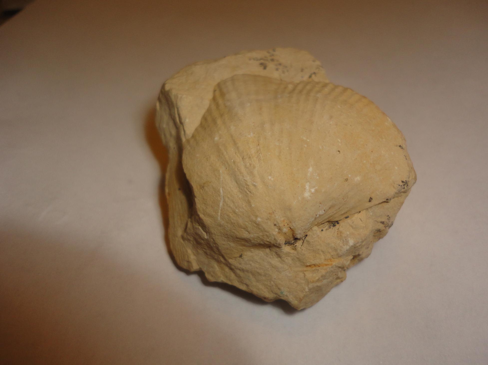 Нашёл определитель окаменелостей Бондаренко О.Б., Михайлова И.А., 1984. Но какой-то он сложный — синус, зубной аппарат, смещённая макушка — и картинки не ахти. В общем, не разобрался. Понял только, что там всё дело во рту: если этот “краб” вторичноротый — брахиопода, а если первичноротый — двустворчатый моллюск.