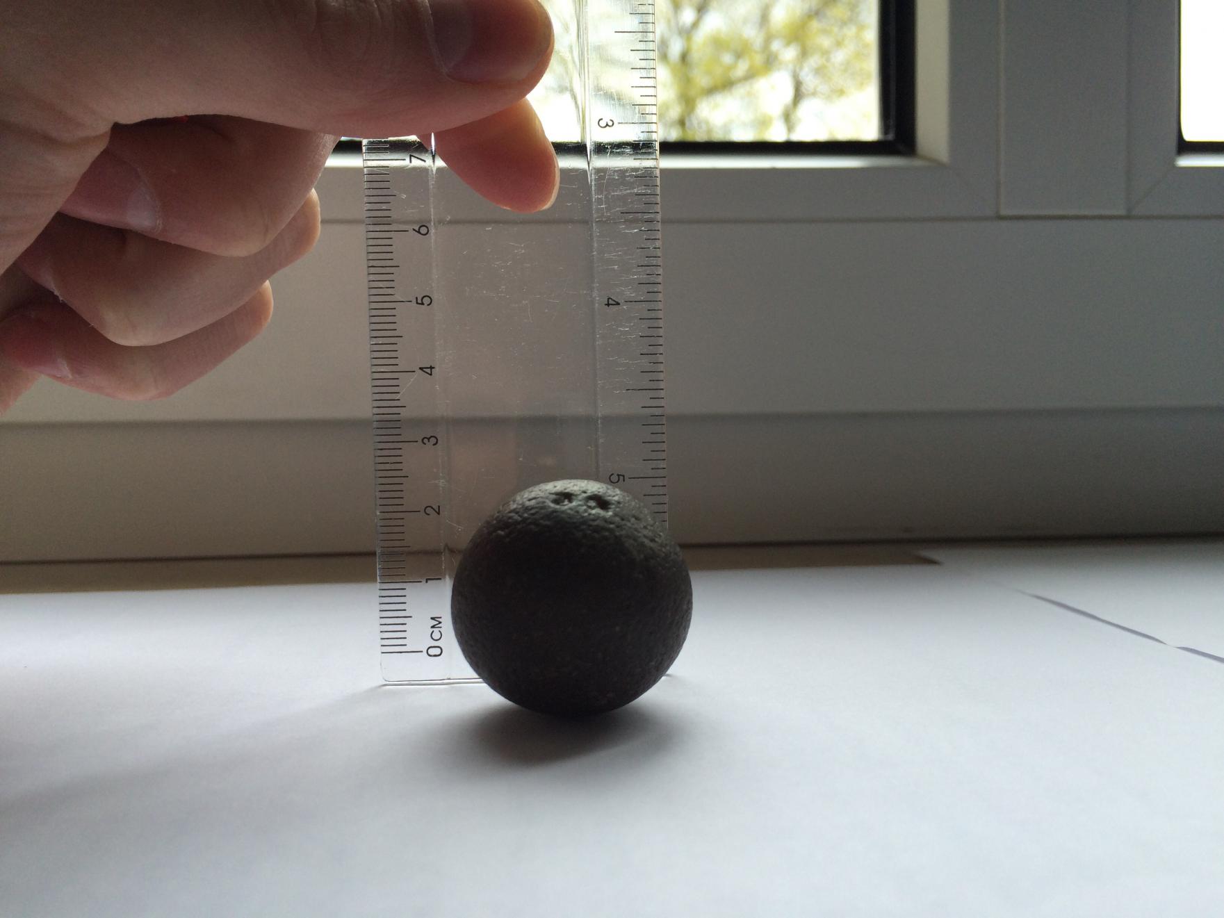 Масса = 39,13 г Объём шара = 4 x 3,14 x 1,5 см x 1,5 см x 1,5 см / 3 = 14,13 куб.см (где 1,5 см = радиус шара) Плотность = масса / объём = 2,77 г/куб.см У железа (стали) плотность ~ 7,8 г/куб.см У олова плотность ~ 7,3 г/куб.см У свинца плотность ~ 11,3 г/куб.см Следовательно, железо, олово и свинец отпадают. У фосфорита плотность ~ 2,8 г/куб.см