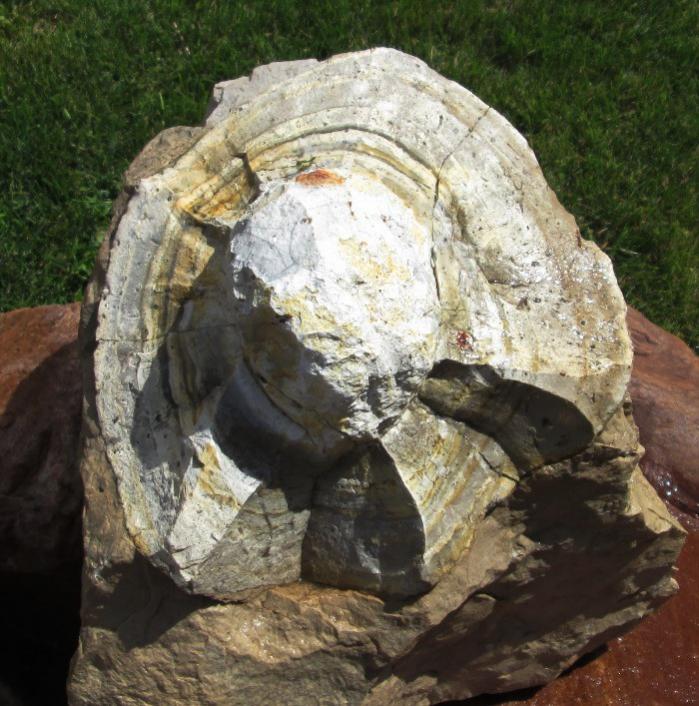 Здравствуйте. Попрошу уважаемых знатоков подсказать, это фрагмент окаменелого яйца или причуды природы? Размер примерно 28 см без камня. Место находки — Поволжье.