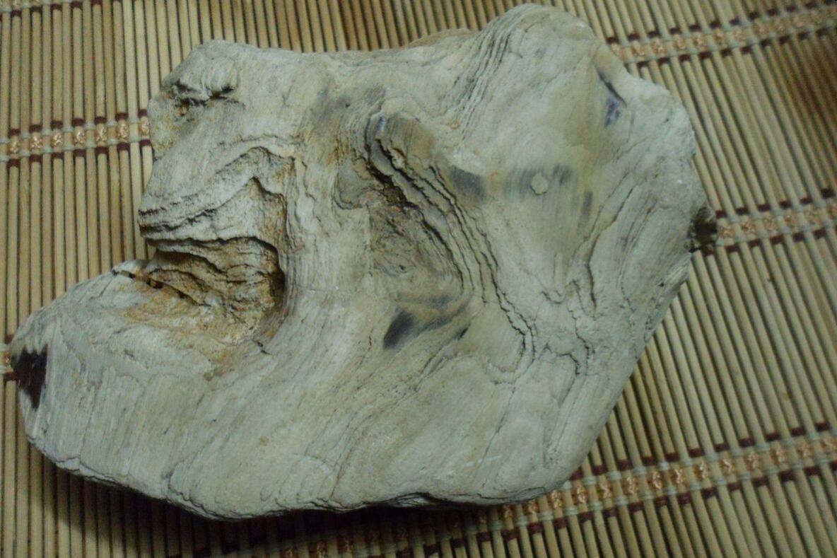 Возможно это окаменевшее дерево, а черное - это скорее кремень. На последнем фото хорошо просматривается слоистость с центром. Более точно скажут специалисты, если представишь дополнительные данные, плотность, твердость.